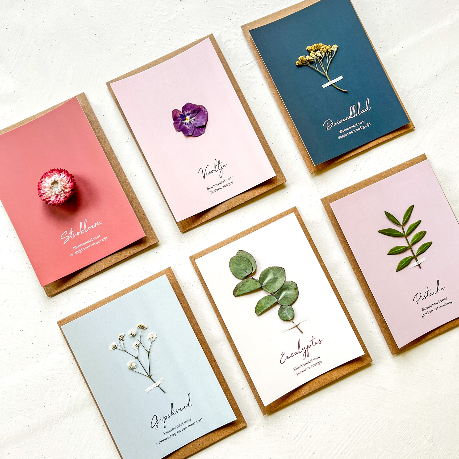 Alle kaartjes zijn met aandacht en liefde geperst, verpakt en geleverd met een kraft envelop in een cellofaanverpakking.